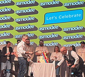 GEBURTSTAG. Der französische Spielemulti Asmodee hat gestern Abend seinen 30. Geburtstag gefeiert. Dabei ging eine Ankündigung von CEO Thomas Koegler fast unter: Der Name Asmodee "versteckt" sich in Zukunft nicht mehr im Impressum auf der Schachelrückseite, sondern wird vorne als Logo für die Käufer sichtbar.