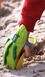 Als Neuestes kommen Schaufeln, Schippen und Plastikeimer dazu, die Jung dazu braucht, im Sand zu buddeln und Bauwerke entstehen zu lassen. Die Serie heißt Baudino und umfasst auch "Bauwerkzeug" für den Wasserbereich. Zum Umschnallen ist ein "Baggerführer-Set", ein den Bauarbeitern nachgeahmter Kommandostand. Besonders angetan unter den Neuheiten hat uns aber die "Buddelkralle" (siehe Bild).