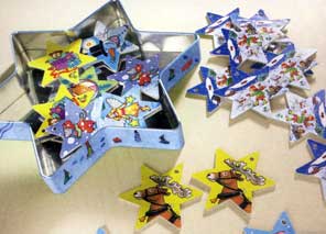 In einer solchen Dose, sternförmig passend zu Weihnachten, steckte erstmals 2006 auch das Spiel Schneeflöckchen. Es ist ein einfaches Memo mit Weihnachtsmotiven, die ebenfalls in Sternform gestanzt sind. Außerdem hat jedes Teil ein Loch, damit die Sterne am Weihnachtsbaum befestigt werden können. Idee dahinter: Das Memo wird am Christbaum gespielt.