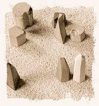 Es ist einmal dunkel, einmal ockerfarben, dann wieder hell. Auch wenn die Teile in Form und Größe identisch sind, variieren sie deutlich im Gewicht. Nein, es ist nicht Stein im herkömmlichen Sinn, auch wenn es so ausschaut und es sich angreift. Es ist "eine neuartige mineralische Werkstoffkombination mit unterschiedlichen Anteilen organischer und mineralischer Füllstoffe."