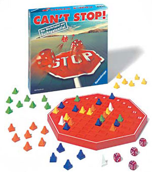 Can't Stop! kam bei uns erstmals 1981 bei Parker heraus. Eerstaunlicherweise verschwand des Spiel dann für damalige Verhältnisse aber sehr rasch wieder vom Markt, obwohl es das Kunststück schaffte, in zwei aufeinander folgenden Jahren auf die Auswahlliste des Spiel des Jahres zu kommen: 1981 und 1982.
