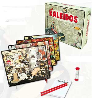 Im Vertrieb der Konstanzer taucht mit Kaleidos ein guter Bekannter auf. Verleger ist Ystari in Kooperation mit Cocktail Games. Das Spiel von Spartaco Albertarelli gab es erstmals 1995 bei der italienischen Firma eg-Spiele. Dass es Kaleidos nun wieder gibt, wird viele freuen. Es ist ein Spiel mit Wimmelbildern: Ein Buchstabe wird ausgelost und dann müssen die Spieler oder Teams möglichst viele Gegenstände mit diesem Anlaut auf der jeweiligen Bildtafel gefunden werden. Die Neuauflage gibt es – voll im Trend – in einer Metallbox.