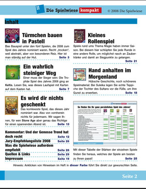 Klicken, lesen – ganz einfach. Das neue eBooklet Spielwiese kompakt ist auf 29 Doppelseiten voll mit Informationen und Links, die Sie nach dem Download weiterführen. Zum Beispiel erhalten Sie auf Mausklick die kompletten Spielregeln, um sich ein genaues Bild über den Ablauf der Spiele zu machen. Und exklusiv: Die Checkliste, die genau auf Sie zugeschnitten ist – denn Geschmäcker sind bekanntlich verschieden. So ist dieses eBooklet ihr perfekter Wahlhelfer für den Spieleeinkauf!