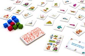 Nun beginnt die erste Runde. Ein Spieler zieht eine Karte, auf der neun Motive aus der Mitte abgebildet sind. Während die Sanduhr läuft, versucht er so genau wie möglich die Motive zu beschreiben, sodass sein linker Nachbar das Bildkärtchen mit dem richtigen Motiv aus der Tischmitte zielsicher greifen kann. Aber wehe man vergisst zu erwähnen, dass das Hundehalsband rot und nicht blau ist. Schnell greift der Mitstreiter dann daneben. Ist die Sanduhr einmal durchgelaufen wird verglichen. Hat der Sucher die richtigen Bildkärtchen erwischt, gibt es für beide Mitspieler einen Punkt in Form eines farbigen Würfels. So wechseln die Paare durch.