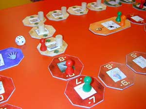 Wenn ein Spieler alleine auf einem Feld übrig bleibt, muss er irgendwann das Kärtchen nehmen – ob plus oder negativ, ganz egal. Foto: Spielwiese |