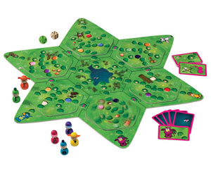 Variabel ist der Spielplan von Fabulantis (rechts), bei dem ein geheimnisvolles Fabelwesen im Zaubersee gesucht ist: Der Spielplan wird puzzleartig zusammengesetzt, darauf kommen drehbare Elemente, durch die sich die Wege immer wieder verändern. Autorin ist Claudia Wieczorek.