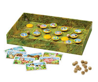 Heinz Meister ist einer der Autoren, die für das Herbstprogramm verantwortlich zeichnen. Sein Turbulento (links) ist eine Mischung aus Geschicklichkeits- und Merkspiel. Tiere, die auf Halbkugeln abgebildet sind und im Schachtelboden liegen, müssen mit Murmeln getroffen und umgedreht werden. Verdeckt sind sie so zu sagen wie die buchstäblilchen Nadeln im Heuhaufen …