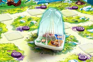 Die Story: Auf der Suche nach den Symbolen zaubert der alte Magier den kleinen Zauberlehrlingen unsichtbare Hindernisse in den Weg. Jeder Spieler versucht als erster fünf Symbole einzusammeln.