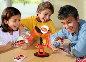 Bei der neuesten Ausgabe von UNO ist Gleichgewicht gefragt. Um bei UNO Tippo zu gewinnen, muss man nicht nur als Erster seine Karten ablegen, sondern auch stets die Waage in Balance halten. Denn wer sie zum Kippen bringt, muss Strafkarten ziehen! Verschiedene Aktionskarten sorgen für zusätzlichen Spaß.Junior-Ausgabe eine anderen Klassikers