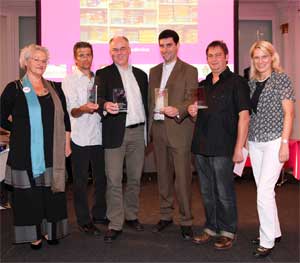 Preisverleihung an der Alten Universität Graz: Elfriede Hofer (Ludovico), Johannes Schmiedauer-König, Hartmut Kommerell, Wolfgang Dirscherl, Stefan Breuer und die Steirische Jugendlandesrätin Mag. Elisabeth Grossmann (v.l.n.r.).