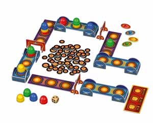 von Nils und Richard Ulrich (Co-Autor von El Grande). Bei Top & Down für 2 bis 4 Spieler ab 8 Jahre geht es ständig auf und ab. Einerseits, weil wie bei Rüsselbande Spielfiguren gestapelt und bewegt werden, hier aber auch noch zusätzlich die Reihenfolge innerhalb eines Stapels (Turms) verändert werden kann, andererseits über erhöhte Wertungsbrücken gezogen wird. Top & Down ist ein buntes Laufspiel, bei dem die bis zum Ziel gesammelten Punkte über den Sieg entscheiden.#