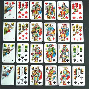 | Gespielt wird mit Kartenbildern, wie wir sie auch von 66 oder Schnapsen her kennen – die Spiele sind schließlich verwandt. |
