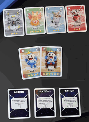 Holomonster gibt es in vier Farben mit unterschiedlich vielen Sternen, dann als Joker, und schließlich sind auch noch Aktionskarten im Spiel. Bild: Anzen |