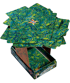 Bei Leaf it! zieht man Karten aus dem Blätterdach des Regenwalds und hofft auf Tiere, die viele Punkte geben. Bild: Hutter |