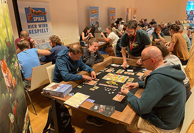 Doch was hat das Spielefest 2025 unsereins, der Brett- und Kartenspiele-Community konkret zu bieten? Für die Herbstneuheiten ist es noch zu früh, mit ganz wenigen Ausnahmen. Etwa stellt Hans im Glück sein Duell um Cordia vorab vor, Pegasus hat 2 win aus Hessen mitgebracht. Fad wird niemandem bei vielen hunderten Spielen, die – abgesehen von den Verlagen an ihren Ständen – zwei Spielotheken parat halten. Mehrere Spielevereine mit unterschiedlichen Schwerpunkten bereichern dieses Spielefest zusätzlich.