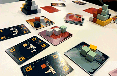 Es steckt somit ein wenig Spekulation drin, wofür die anderen wohl bieten werden: Wer nutzt aktuell den Vorteil des niedrigsten Zahlenplättchens? Wer braucht die zwei gelben Steine vom roten Markt unbedingt? Es ist jederzeit sichtbar, wem welche drei Steine eines bestimmten Marktes am meisten nützen. Ein bisschen Wettbewerb gibt es also doch. Von Haus aus wird er mit drei Bonuskarten "befeuert", die zufällig gezogen jede Partie um einen Deut spannender machen. Sie bringen jeweils fünf Sonderpunkte für bestimmte Konstellationen, zum Beispiel wer die größte zusammenhängende Farbfläche in der ersten Ebene gebaut hat.