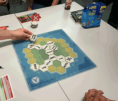 Was sind Hinweise? Für jede Partie gibt es eine andere Expeditionskarte und auf jeder sind drei Felder mit einem Wort versehen. Diese drei Wörter werden auf drei sechseckige Plättchen geschrieben und können zum Beispiel "Rollschuh", "Wurm" und "Arm" sein. Gemeinsam ergeben sie nie Sinn, doch das ist Absicht. Denn schreibt der Lotse nun „Hand“ auf ein neues sechseckiges Plättchen, dann deutet das wohl am ehesten darauf, dass er ein benachbartes Feld von „Arm“ gemeint hat. Aber welches? Darüber muss sich die Mannschaft einigen und das Plättchen mit dem Hinweis "Hand" platzieren. Der Lotse erklärt dann, um welche Art des Feldes es sich handelt, auf das sich die Mannschaft festgelegt hat. Mit jedem Hinweis füllt sich der Spielplan und jeder Hinweis lässt neue Möglichkeiten zu oder schließt solche aus.
