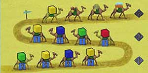 | Die Karawane wird der Reihe nach von hinten beginnend besetzt. Am Ende jeder Woche gibt es für jeden Warenstein zusätzliche Siegpunkte für die Besitzer. | |