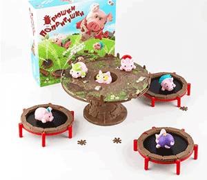 Schweine hüpfen lassen: Das Kinderspiel Flieg Schweinchen flieg, hier in der ukrainischen Ausgabe. Bild: Play Monster |