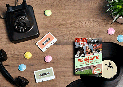 Das Spiel – eigentlich ein simples Quiz, denn es gibt keine Anleitung und damit auch keine Regeln, wie und wer und was zum Sieg führt – heißt Das war Spitze! und ist bei Moses erschienen. Der Untertitel ist Programm: „Retro-Quiz … Unterhaltsame Fragen zum Schmunzeln & Erinnern“. Beides ist garantiert, wenn Zweiteres auch nicht immer in jedem Detail. Dazu ist die Themenpalette zu bunt. Natürlich, ein bisschen Deutschland-lastig, doch selbst wir Österreicher haben fast alles mitbekommen.