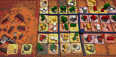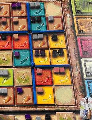 | Wie schon das Original ist das Spielbrett der Neuauflage klar strukturiert und die einzelnen Fruchtsorten sind klar zu unterscheiden. Neu ist hier die überflüssige "lateinamerikanische Siedlung" (links) |