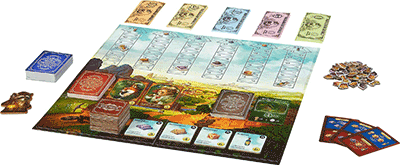 Da lächelt einem genugtuerisch ein Waschbär in englischem Gewand von der Schachtel entgegen. Raccoon ist das englische Wort für Waschbär. Auf der Rückseite sind mehrere Karten mit anderen Tieren abgebildet. Wer auf ein Kinderspiel schließt, liegt ebenso falsch wie diejenigen, die sich in einem Fantasyabenteurer wähnen. Waschbär-Tycoon wird, wer ein beinhartes Wirtschaftsspiel für sich entscheidet.