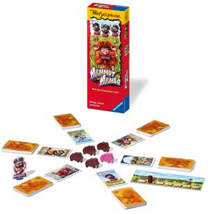 Ein sehr schlankes Schachtelformat hat Ravensburger für die neue Reihe Partyspiele gewählt. Da findet man als Erstes einen alten Bekannten, nämlich Nobody is perfect in abgespeckter Form. Neu sind hingegen Mammut Mambo, Tohuwabohu – Einfach tierisch! und Tohuwabohu – Berühmt berüchtigt! Beim ersten kommen mit Karte um Karte immer mehr Rufe und Gesten ins Spiel, die alle gleichzeitig machen müssen. Bei den Tohuwabohu-Spielen gibt es jeweils 100 schräge Aufgaben, von denen die Spieler unter Zeitdruck mehrere erfüllen sollen – aber alle gleichzeitig und wild durcheinandere! Insgesamt also lockerer und turbulenter Spaß.