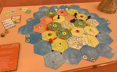In der Ausstellung als rares Highlight zu sehen: Der Prototyp von Die Siedler von Catan, heute einfach nur noch Catan. Bilder: spielwiese.at |