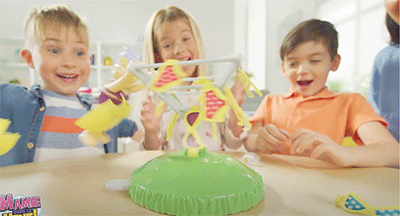 2021 in den Niederlanden zu Kinderspiel des Jahres gewählt, kommt Hildes wilde Wäschespinne! jetzt auch zu uns. Die Kinder sollen Wäschestücke aufhängen, wenn der Wetterwürfel Sonnenschein zeigt. Zeigt er Sturn, dann wird der Knopf gedrückt und die Wächespinne beginnt sich zu drehen und die Wäsche fliegt davon. Bei den Holländern ist es übrigens nicht Tante Hilde, sondern die Oma.