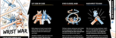 Jedes der 21 Handspiele ist vortrefflich auf einer Faltkarte illustriert. Hier in der englischen Originalversion von 21 Hand Games. Bild: Orange Machine Games |