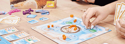 Über den Wolken (nicht identisch mit einem ehemaligen Spiel bei Clementoni) ist vom griechischen Autor Konstantinos Karagiannis, von dem wir zuletzt Calçada im Spielwiese-Test hatten. Dieses Mal sind wir in der Welt der Zugvögel. Die Spieler platzieren ihre weiblichen und männlichen Zugvögel möglichst so, dass sie für den Abflug aus der vordersten Reihe den perfekten Zeitpunkt erwischen. Ob Vogelpaare dabei gemeinsam oder getrennt losfliegen, kann den Erfolg der eigenen Flugformationen entscheiden. Und auch im Schwarm der Spätstarter gibt es lukrative Plätze zu ergattern, denn die frühen Vögel kommen später nicht mehr zum Zug. In das Geschehen am Himmel greifen die Spieler mit einem knappen Vorrat an Aktionswürfeln ein. Dabei steigt der Preis jeder Aktion, die wiederholt wird.