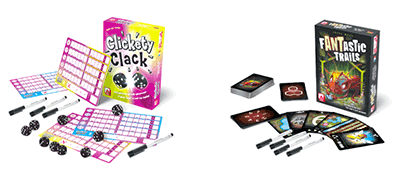 Erster Blick auf die Spiele: Beide Neuheiten beinhalten abwischbare Tableaus bzw. Karten. Bild: NSV |