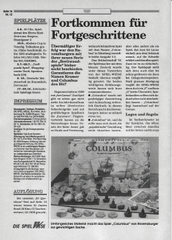 - Columbus ist, und da sollte man sich durch die "populistische" Gestaltung nicht täuschen lassen, aber alles andere als ein Spiel, das man bei Laune einfach aus dem Schrank nimmt, auf die Schnelle erklärt und drauflos spielt. Dazu ist es zu vielschichtig. Der Spielspaß stellt sich denn auch eher bei schon geübteren ein denn bei Gelegenheitsspielern. Nach genauer Abwägung vergibt die SPIEL-WIESE denn doch ein „F" und kein „G“ (siehe Übersicht). Spielerfamilien sollten sich dadurch aber nicht abschrecken lassen – Columbus llegt haarscharf auf der Grenze.