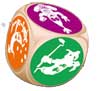 Natürlich sind auf den Würfeln keine Zahlen, sondern Bohnensymbole aufgedruckt. Die schon angedeuteten Chinabohnen etc. Ihre Namen tun für Otto Normalspieler nichts zur Sache, für sie sind es ganz einfach die Farben Grün, Blau, Gelb usw. Aber auch Bohnanza-Unkundige sollten beachten, dass es bei den insgesamt sieben Bohnenwürfeln einen feinen Unterschied gibt: Die Verteilung der Bohnen ist unterschiedlich. Braune Saubohnen kommen zum Beispiel nur auf den vier weißen Würfeln vor, die grüne Gartenbohne nur auf den drei beigen.