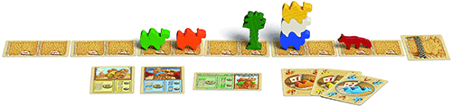 Ach ja, es ging ja ums Wetten! Für alle Kamelfarben gibt es eine ganze Reihe Wettkarten, die Ertrag in „Ägyptischem Pfund“ versprechen, sollte man damit auf das richtige Etappenergebnis gesetzt haben. Wenn nicht, verliert man ein Pfund. Jeder Spieler darf während des Zugs eine Wettkarte nehmen, man darf also mehrere besitzen und die Einsätze dem Rennverlauf anpassen. Allerdings ist es auch in der Cards-Version so, dass, wer zuerst kommt, am meisten mahlt.