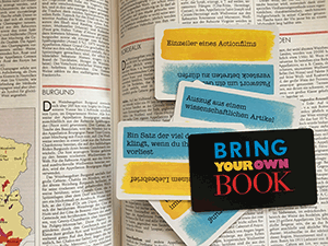 | Bring Your Own Book lässt sich mit fast jeder Art Buch spielen, auch mit Fachliteratur. Ein bisschen Herausforderung schadet schließlich nicht. Bild: spielwiese.at |