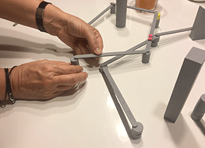 Die Bauregeln von Pfeilern und Straßen sind eindeutig. Bei den Gabelungen hat es beim einen und anderen Testspieler gehakt. Darum geht's: Jeder Spieler erhält zu Beginn auch zwei oder drei gelbe Pfeiler. Verwendet man sie, darf man damit nicht nur größere Niveauunterschiede als +1 oder -1 überwinden, sondern von diesem Pfeiler aus auch mit einer zusätzlichen Straße abzweigen. Das erhöht die Möglichkeiten, fremde Straßen zu kreuzen. Aber leichter gesagt als getan: Es ist schon diffizil genug, im Normalfall einen zweiten der 9 mm breiten Straßen sicher auf einem Pfeiler mit 17 mm Durchmesser abzulegen. Bei drei Straßen nähert man sich Chirurgenniveau.