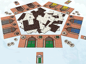 Alles beginnt mit einer Tür. Von da an baut jeder vor sich Stück für Stück an und am Ende werden es, streng genommen, mehrere zusammenhängende Häuser unterschiedlicher Höhe sein. Der entscheidende Punkt ist, wo die Häuserfront mit einem Dach abgedeckt ist. Nur was unterhalb eines Daches ist, ob Fenster oder Tür, kann gewertet werden. Einzige Ausnahme: Für Katzen, die auf einer Fensterbank schnurren, gibt es immer Punkte. Sie machen das Kraut nicht fett. Lukrativer ist, Dächer auf verschiedenen Ebenen einzuziehen: Ein einziges Dach bringt nur einen Punkt, Dächer auf zwei unterschiedlichen Ebenen 1 + 2 Punkte, für eine dritte Ebene kommen noch mal drei Punkte dazu usw. Fünf unterschiedlich hohe und eingedeckte Gebäude bringen nach der Formel 1+2+3+4+5 insgesamt 15 Punkte.