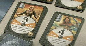 Vorneweg hat jeder Spieler den gleichen Grundstock an sieben Wikingerkarten – ab hier ist nur noch von Wikingern die Rede – erhalten. Die Wikinger-Saga ist ein Deckbauspiel, das heißt: Den Spielern bleiben ihre Karten erhalten, kommen aber in unterschiedlicher Reihenfolge wieder ins Spiel. Zu Beginn jeder Runde können neue, zum jeweiligen Abenteuer passende Wikinger erworben werden. Das kostet Gold. Wie viel, ist auf der Karte unten rechts angegeben. Die markante Zahl in der Mitte gibt an, wie viele Bewegungsschritte mit diesem Wikinger ausgeführt werden müssen. Zusätzlich verfügt jeder Wikinger, wie oben schon geschrieben, noch über die Fähigkeit einer bestimmten Aktion. Diese kann sich positiv oder negativ auswirken, einen selbst oder alle betreffen.