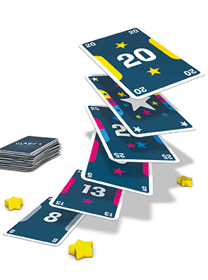 Ach ja, die zwei Regeln! Erste Regel: Die ausgespielte Zahlenkarte muss höher sein als die vorangegangene oder muss einen Stern in einer Farbe zeigen, die ein Stern der vorangegangenen Karte hat. Zweite Regel: Wer nicht bedienen kann, scheidet für die laufende Runde aus. Es passiert durchaus, dass man erst gar nicht an einer Runde teilnehmen kann, weil schon das Bedienen der ersten Karte(n) unmöglich ist.