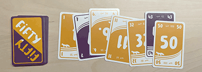 Es gibt im Spiel 100 Zahlenkarten von 1 bis 100, jede dritte ist violett, die übrigen sind orange. Dann gibt es noch 20 Karten mit einem Fuchs. Mit diesen Karten kann man passen und ein akutes Problem übertauchen. Nur am Spielende sollte man besser keine Fuchskarte übrig haben, weil man dann bei einer der zwei Endbedingungen gänzlich aus dem Spiel ausscheidet.