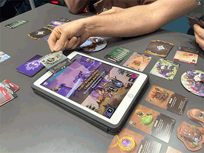 Das Schöne: Die App kennt alle Karten im Spiel. Sie hält auch alles fest und teilt es über das Display mit, mit Ausnahme unserer Lebenspunkte. Davon hat der Verlag abgesehen, weil wir sonst ungleich mehr und öfter unsere Karten hätten scannen müssen. Die solide Punktescheibe für jeden Helden tut's auch. Ein Dankeschön an dieser Stelle für die vernünftige Entscheidung.