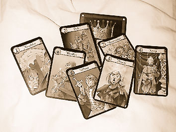 Die Identitäten werden so gewählt, wie man es von Verräter (siehe Spielwiese 52) her kennt: Die Karten mit den Identitäten wandern reihum und man sucht sich eine aus. Wer der aktuelle König ist, hat Vorteile: er darf als erster wählen. Weil bei Ohne Furcht und Adel immer noch Identitätskarten verdeckt beiseite liegen, weiß keiner vom anderen, wen er in dieser Runde darstellt. So soll es auch sein.