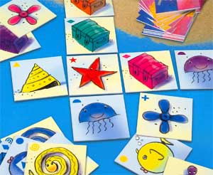 Bald einmal ergibt sich dadurch ein Kreuz, weil die Regel nur eine senkrechte und eine waagrechte Achse zulässt. Das Kind, das das letzte Kärtchen anlegen konnte, gewinnt alle ausliegenden. Es hat in der nächsten Runde viel mehr Auswahl, denn es geht weiter mit dem selben Ziel. Es werden so viele Runden gespielt, wie Kinder teilnehmen.